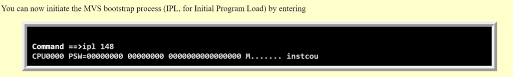 But the MVS OS still hasn’t been loaded. And even though I was a systems programmer, that still wasn’t something that I typically did myself. Back to the documentation, which includes the magic command: