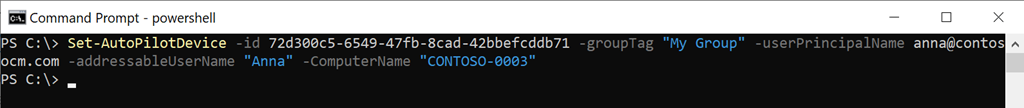 Since the Intune portal is built on top of the Graph API, that also means that these values can be modified via PowerShell or other external means too. To help with that, I’ve published a new version of the WindowsAutopilotIntune module, which has a new Set-AutopilotDevice cmdlet that can set all of the values available on a Windows Autopilot device:
