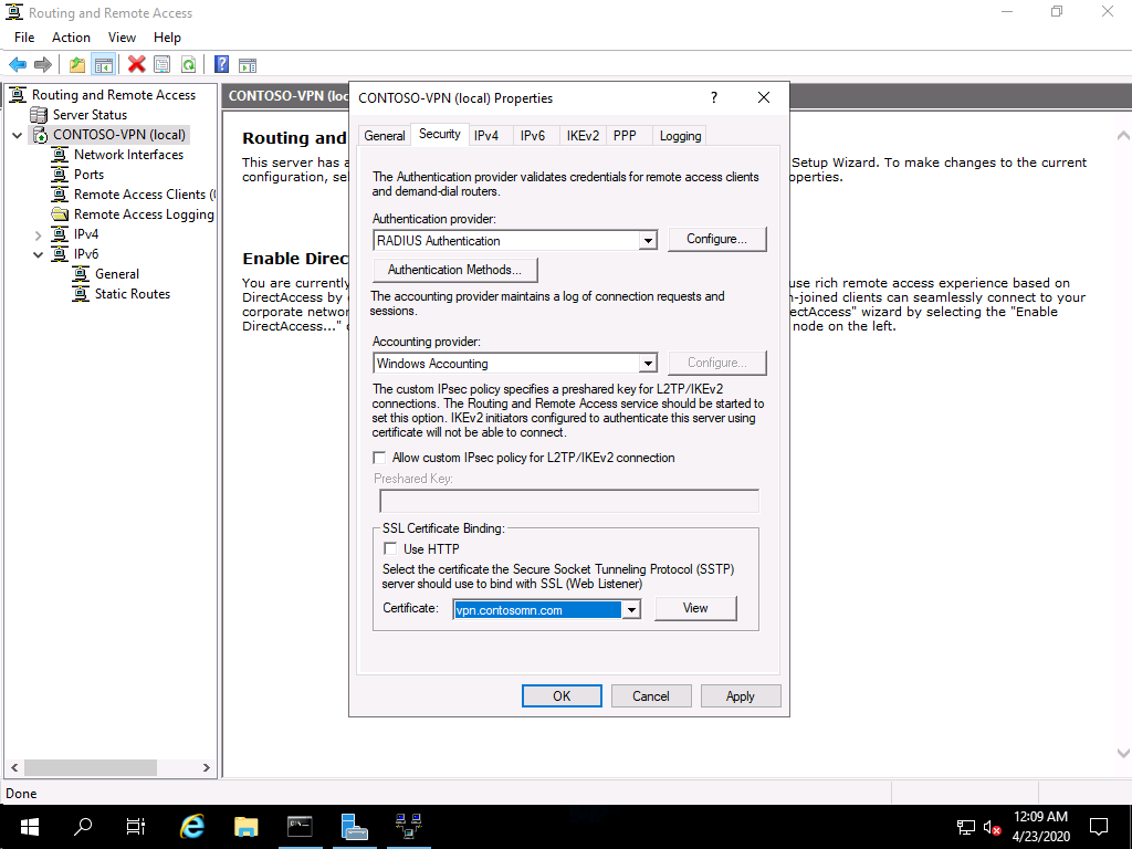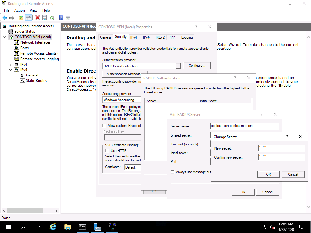 Next, you have to configure RRAS to use RADIUS, a.k.a. NPS: