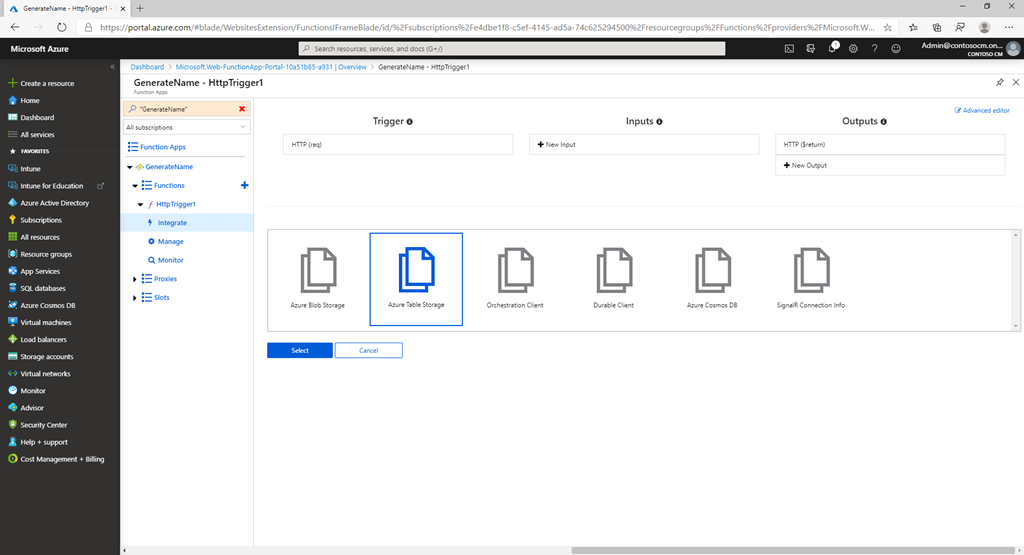 How exciting, one column added. But it gets me set up for what I really wanted to do: Create a function that generates a sequential computer name. That shouldn’t be too hard, but I chose to do it with C# script (basically, code compiled on the fly) which made debugging a little bit more challenging. And I added in Azure table storage, which I hadn’t used before either. So let’s just say it took me a couple of hours to get to this: