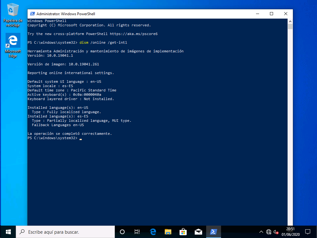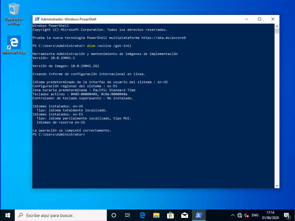 You can see the system UI language is still en-US, but the user default language is obviously es-ES as “most things” are in Spanish.  (Notice that some of the DISM output is still in English.  That’s what they mean by “partially localized language” in the output – and why LXPs are smaller than the language pack CAB files.)  So again, goal achieved.