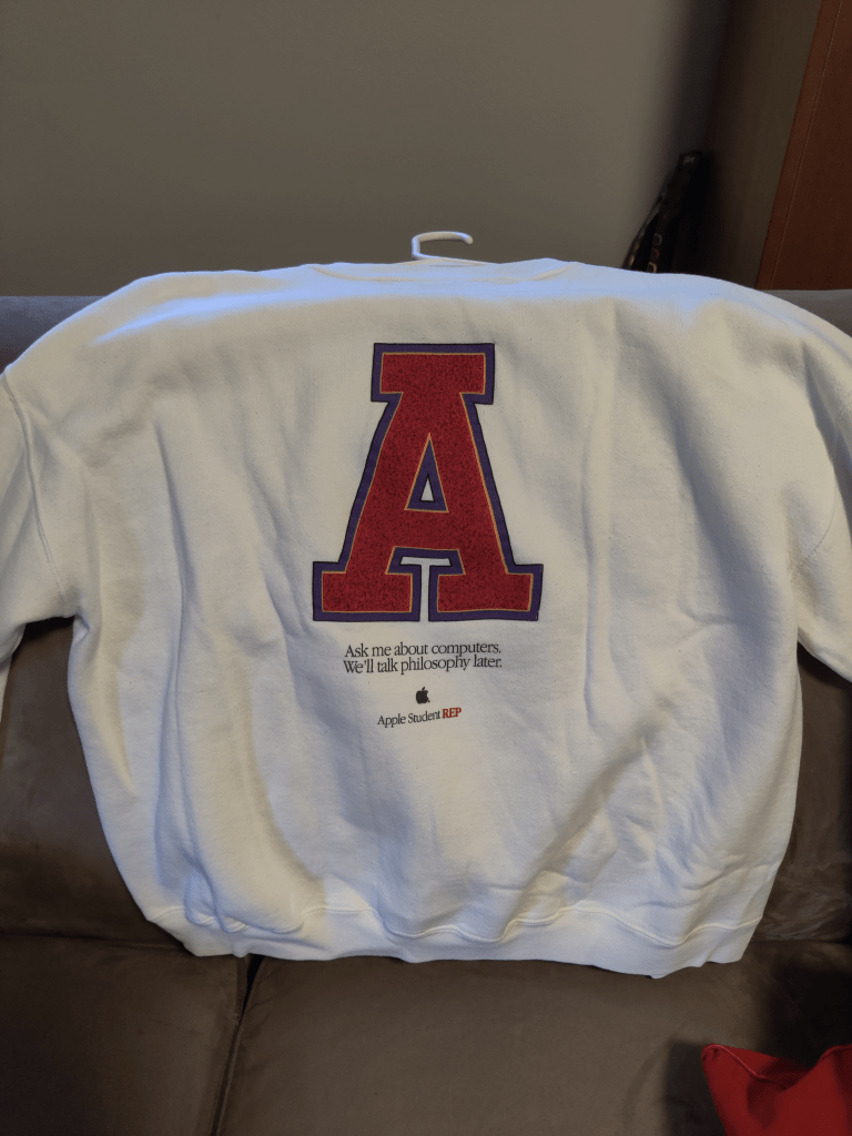And if you’ve been paying attention to my Twitter feed, you might even see some Mac stuff mixed in. For those who wondered about the back of the sweatshirt in this tweet, here’s what it looks like:
