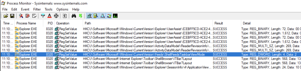 Watching with ProcMon will show the registry key that was modified, changing the value from 0 (on) to 2 (off):