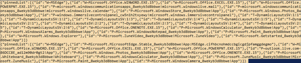 But if you notice, there are some blank “slots” for pinned icons in that list (with the dots on the side of the screen indicating that there’s another page with icons on it too if you scroll or click the dots). That’s tied to what I was talking about in my previous post: there’s a default list of things to pin, as you can see by peeking into the binary (because who doesn’t open these in Notepad just to see what’s in them?):