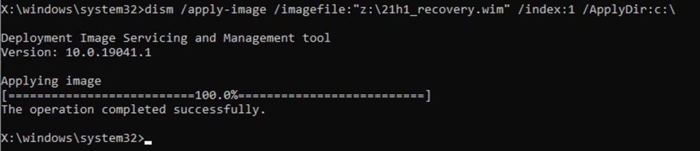 Alright, so you can export your own file. But can you make your favorite deployment tool use them? It depends on what that tool tries to do with the images. If they just try to get image metadata out of the file, it will work fine. But if they try to mount or extract a file from the WIM, it will fail miserably. So results might be unpredictable. But let’s try a couple of simple cases just to see. First, does DISM handle applying one of these “solid” WIMs (ESDs) itself? The easiest way is to try it.