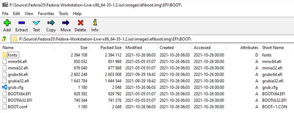 But booting from a CD (or the more common case of booting a VM from an ISO, since most VMs can’t easily use a USB key) is a little more interesting. I always assumed that the UEFI firmware was smart enough to read the needed files from an ISO9660 or UDF structure on the CD/ISO itself, but working with Linux OSes over the past few days made me realize that’s not the case at all.
