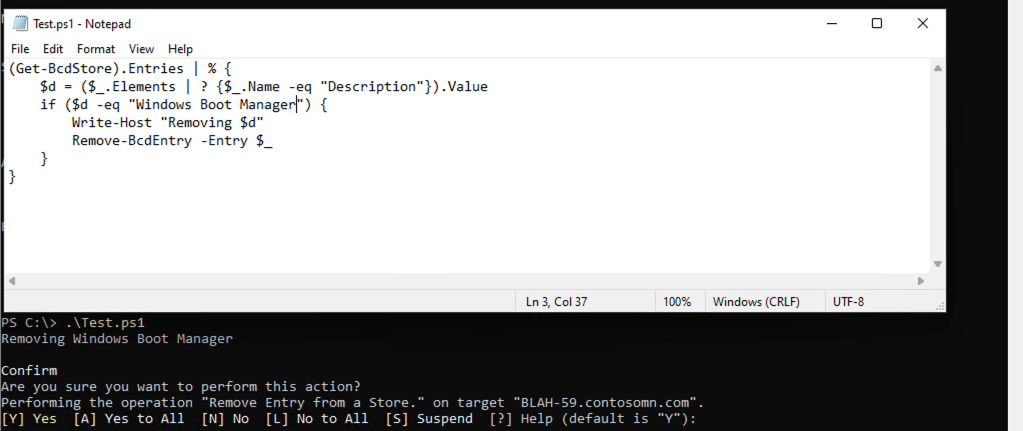 Nice that it prompts for confirmation (you could specify -Force to avoid that). The code overall isn’t awful, but it’s definitely “code” and not simple “script”, e.g. what I’d like to see: