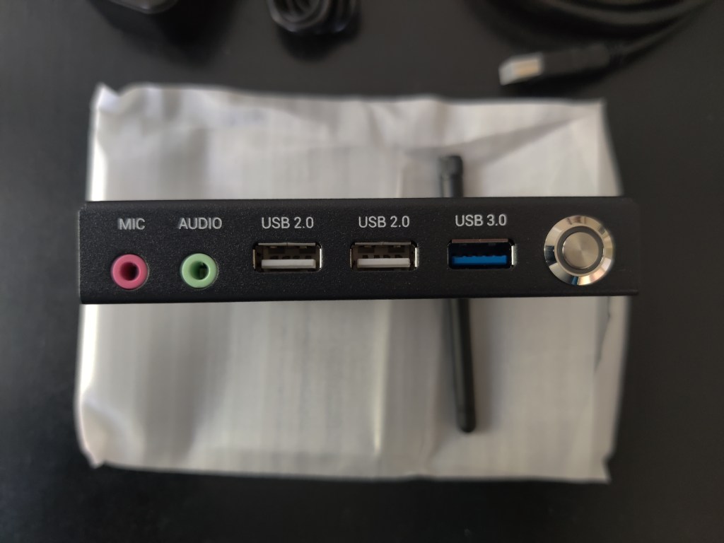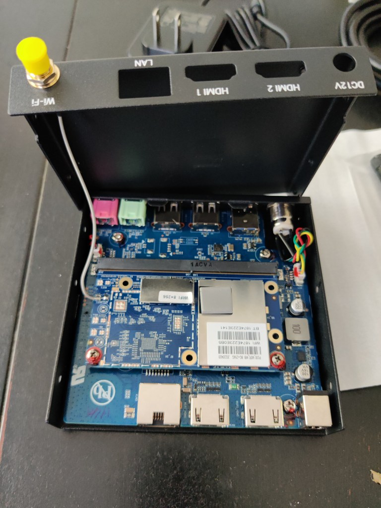 I would have also liked to have a USB-C jack, and USB-C power, but again that would add cost, so you just get USB-A and and old -style power cable. Weirdly, there are two HDMI jacks — I guess in the IoT/terminal space you may want to drive two monitors using one computer (think digital signs, menu boards, etc.). Each of those HDMI jacks supports a 2K display, but neither of them want to properly sync with my 1080p monitor (with or without the KVM), requiring some “creativity” to get the initial video out of it. (I switch to RDP later, so all good after that point. I had similar problems with an M1 Mac Mini, so this wasn’t a major surprise.)