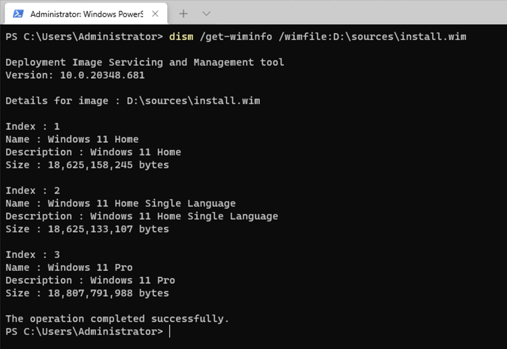 And searching for that file on my Mac, I can find it in the “Downloads” folder. Translating that file name, it’s a standard “client” image of Windows 11 21H2 (patched), so in theory that ISO contains all the retail SKUs. A quick check (mounting the ISO on a Windows machine and using DISM to look at the Windows image file) confirms that: