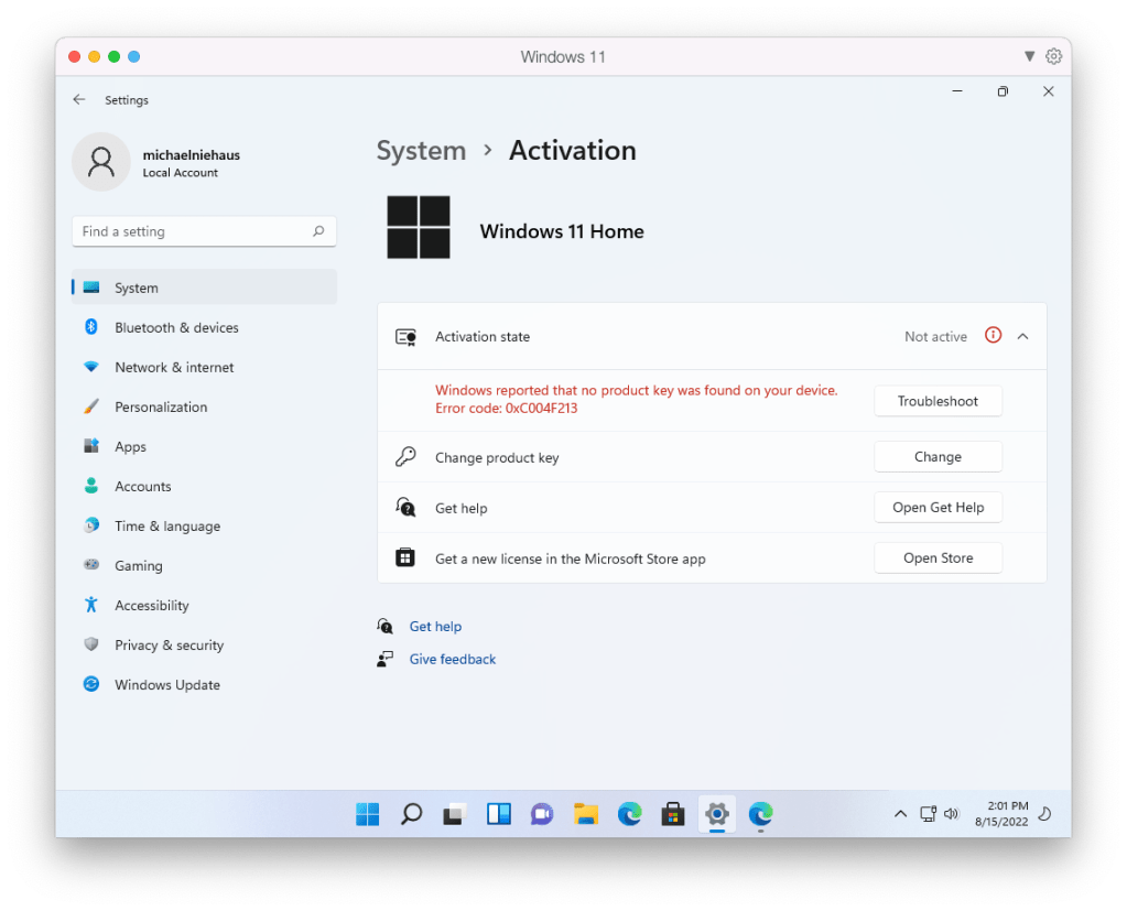 That was very easy. But that raises the next question: Am I licensed for this Windows 11 installation, or do I still need to buy a license? A quick check in Settings confirms that: