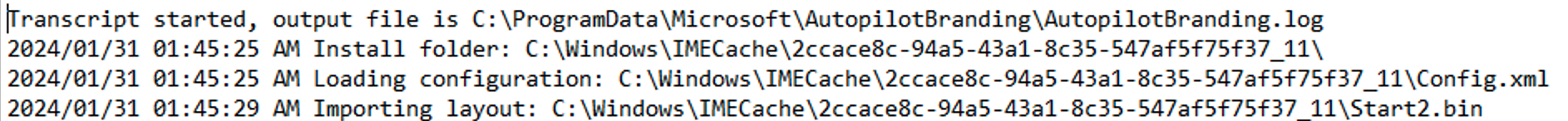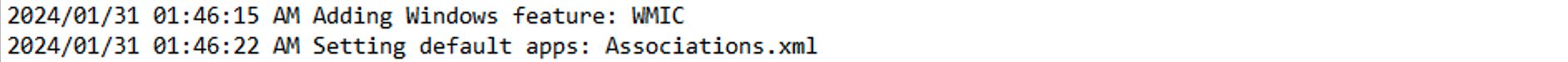 Since I had been testing out the UpdateOS script to see how it performed based on the number of CPU cores, I figured I should try the same thing with the Autopilot Branding package as I had noticed that it too was fairly slow, taking close to 10 minutes to complete in a VM. The first change needed for that was better logging, so you could more easily see after the fact where most of the time was spent. Each log line will now show a timestamp: