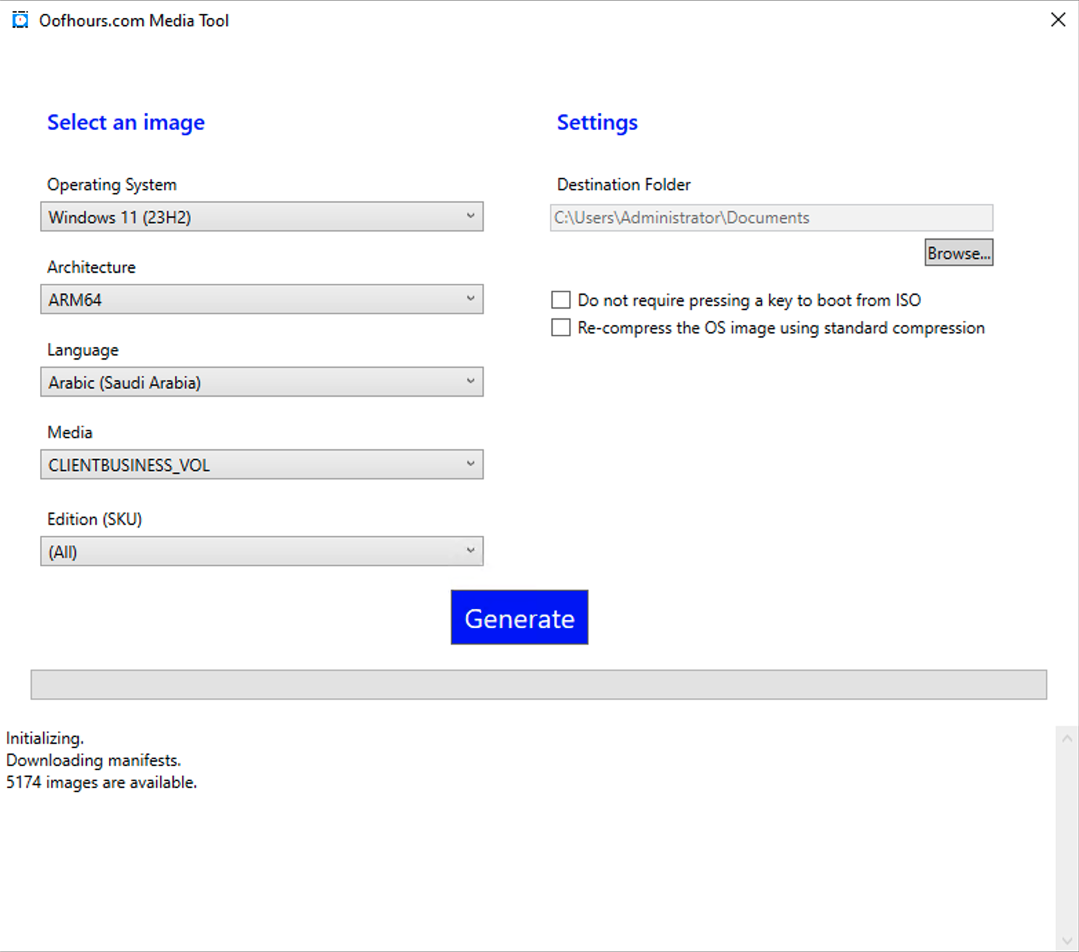Back in 2023, I posted a Media Tool app (which uses PowerShell behind the scenes) to download Windows 10 or 11 media, for both x64 and ARM64 architectures. I’ve now uploaded a new version of that with a few tweaks: You can get the latest version directly from GitHub at this link: OofhoursMediaTool.zip The new … Continue reading Updated Media Tool available
